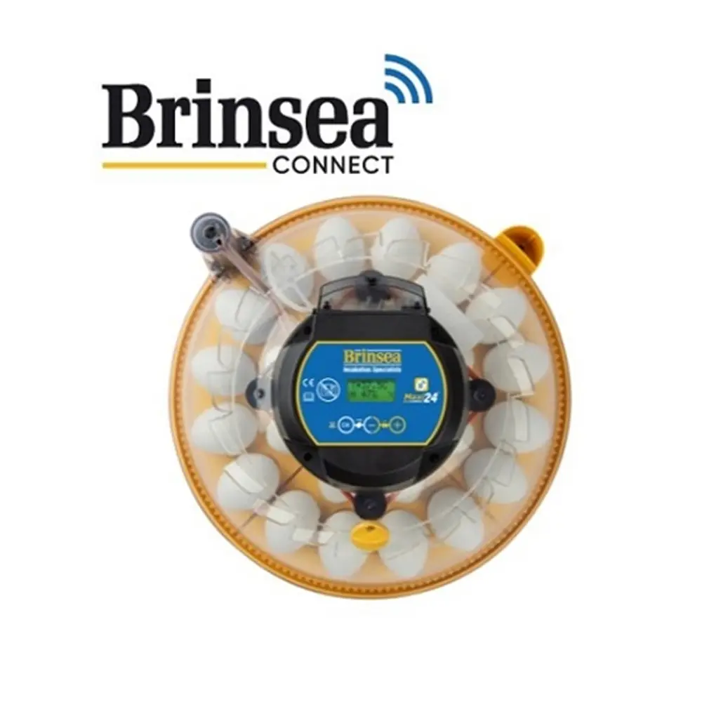 Controleer en bewaak uw broedeieren 24/7 overal ter wereld vanaf uw smartphone met Brinsea's revolutionaire NIEUWE Maxi 24 EX Connect broedmachine. Download de gratis Brinsea Connect app in de Apple Store of Google Play. Real-time monitoring, gemak en volledige controle maken de Maxi 24 de ideale broedmachine voor alle fokkers.